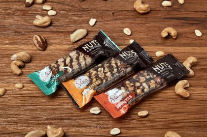 Elaborada com estes ingredientes selecionados e sem glúten, a barra de nuts traz os benefícios nutricionais das castanhas e sementes para seu lanche, sendo uma fonte de fibras e proteínas.